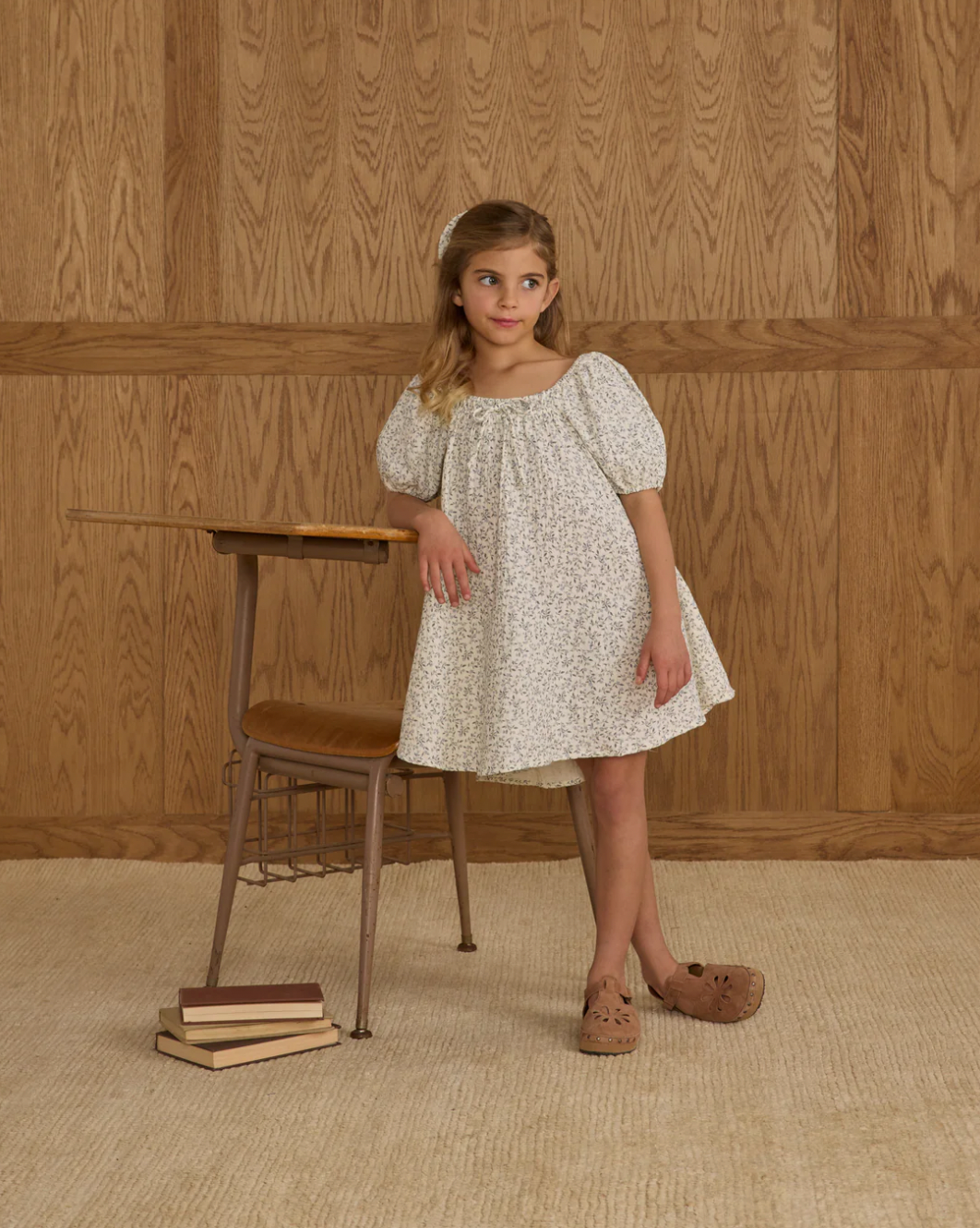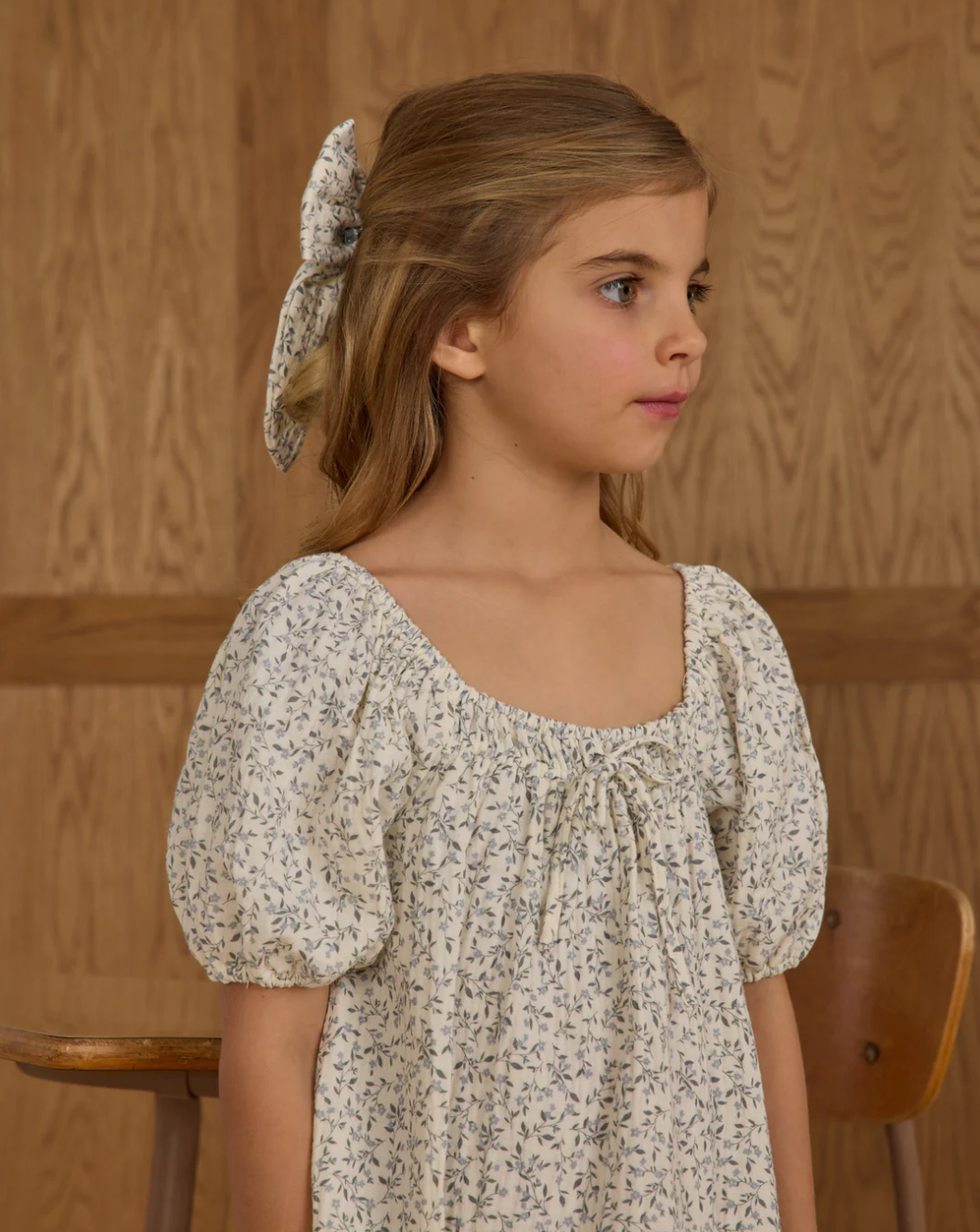 Our Sabrina Mini Dress features smocking at the neckline, a full gathered silhouette, balloon sleeves, and a fixed bow for a sweet finishing touch.