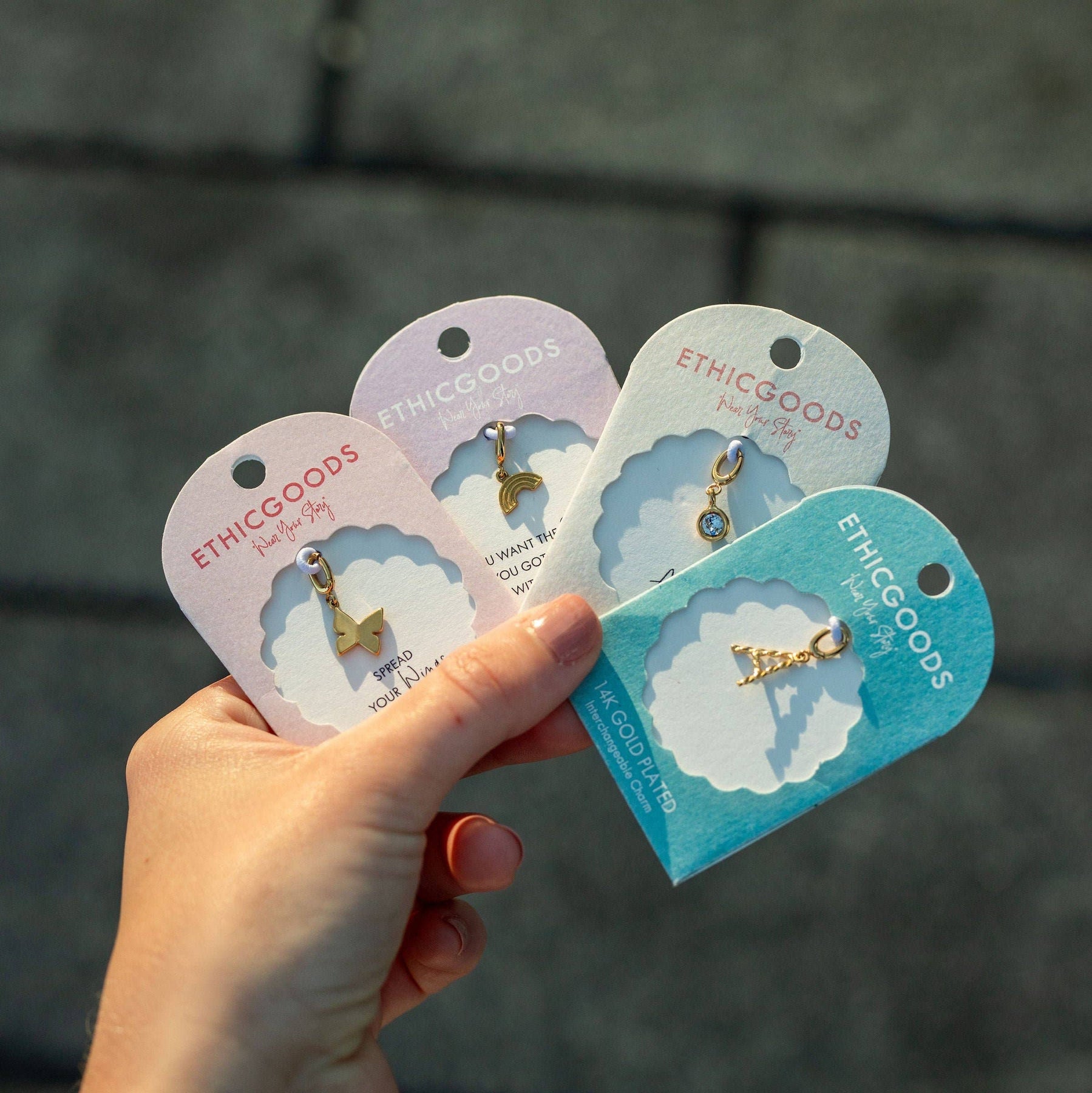 Add a touch of sentimental charm to your jewelry collection with these Birthstone Charms. Each charm is a sweet reminder of important moments or your favorite color. They effortlessly elevate any outfit. Choose your charm and let it shine! Personalize your look and tell your story with these versatile charms. Shine on, you! * 14K Gold Plated * Water Resistant and Sweat proof * PVD Coating over stainless steel * Clasp - 8x6mm * Charm - 10x8mm Each piece of jewelry is ethically handmade by talented artisans in Thailand. Your purchase provides fair, sustainable employment, empowering these artisans to support their families and build brighter futures. When you wear ETHICGOODS, you're not just wearing beautiful jewelry—you're contributing to a global movement of positive change.
