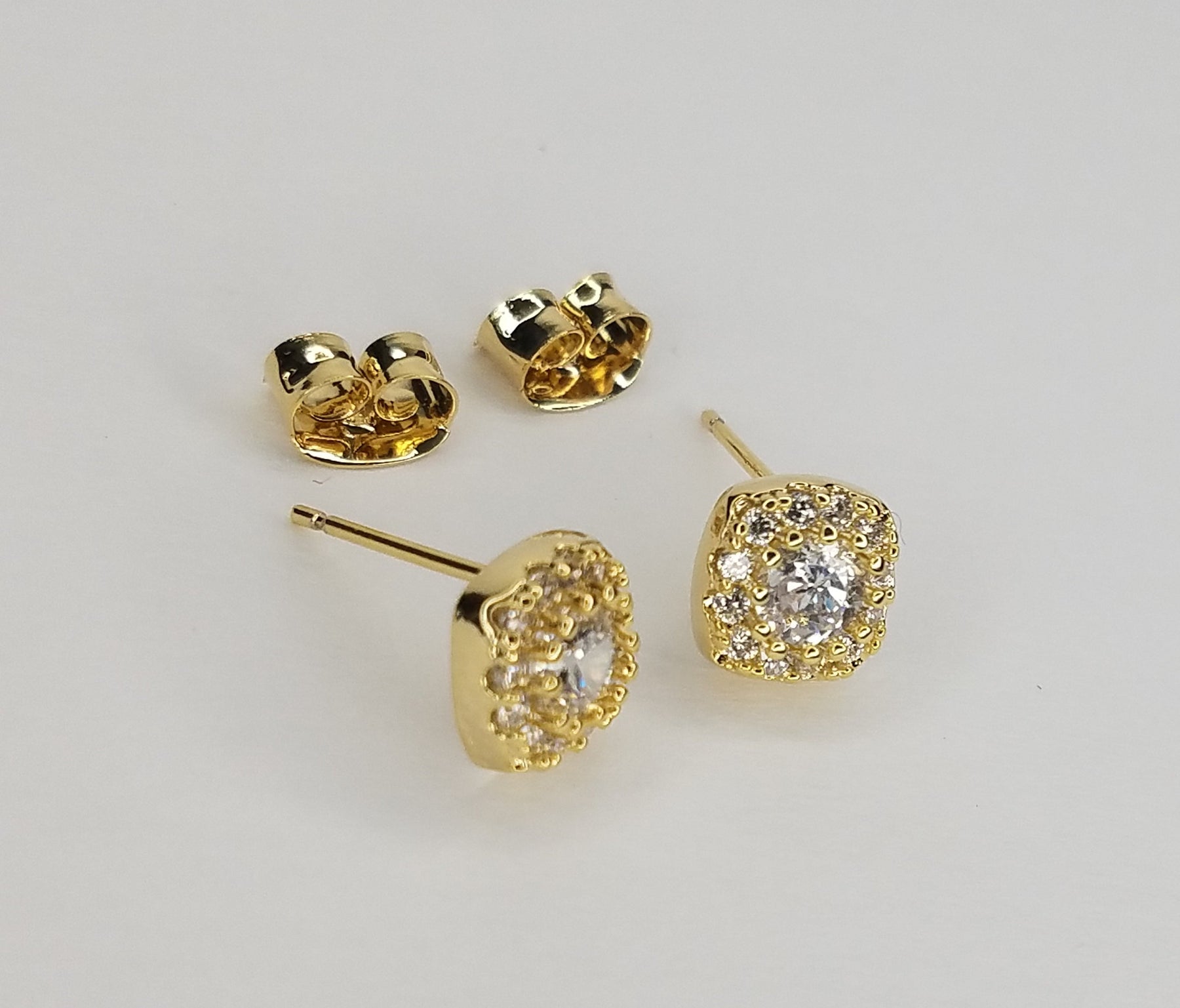 • SQUARE SHAPE CUBIC ZIRCONIA, SILVER POST EARRINGS