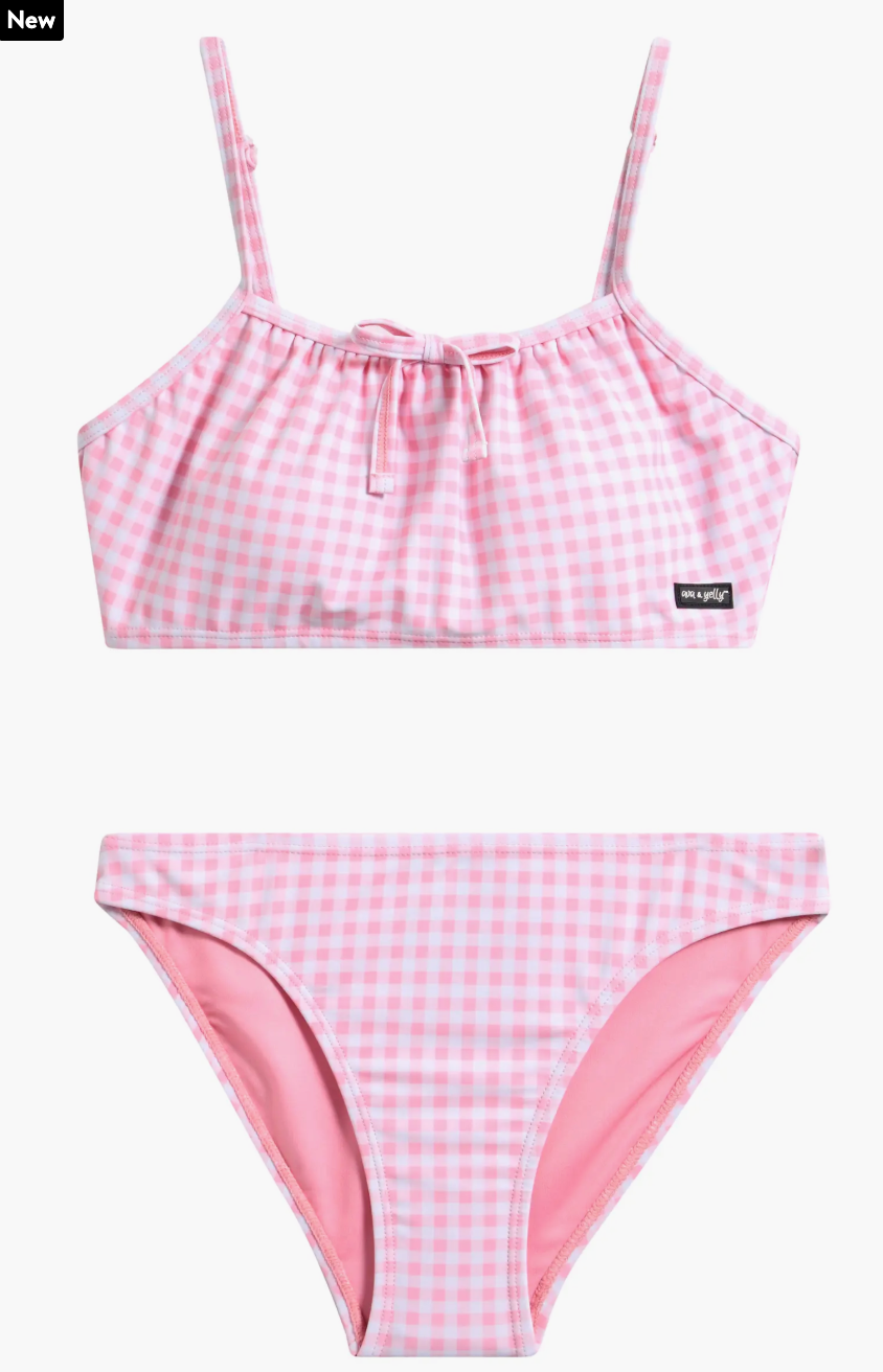 Sweet, sunny, and made for splash-filled days! The 2PC Printed Emma Bikini Swimsuit is the perfect blend of classic charm and playful fun. Featuring a timeless gingham print in the prettiest soft pink, this set brings major summer vibes whether she’s poolside, beach-bound, or headed to a swim party.
