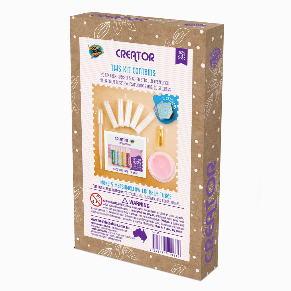 Pamper your lips with our Lip Balm Marshmallow! This all-inclusive kit lets you create 5 tubes of nourishing lip balm, using our hand-poured base made with all-natural Australian ingredients like coconut oil, beeswax, and cocoa butter. Simply melt, mix, and pour for a smooth and deliciously scented lip balm experience!