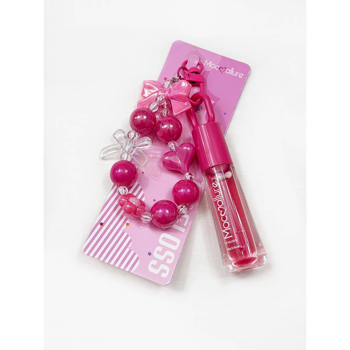 Cute Bow Charm Keychain with Scented Lip Gloss - Every girl loves to add a little shine to her look when she's out in the world. This fun keychain, with a bow charm and pink bead lip gloss set can be used for daily lift and fruity scent will make you feel happy. Use lip gloss to nourish, protect, and enhance lips.