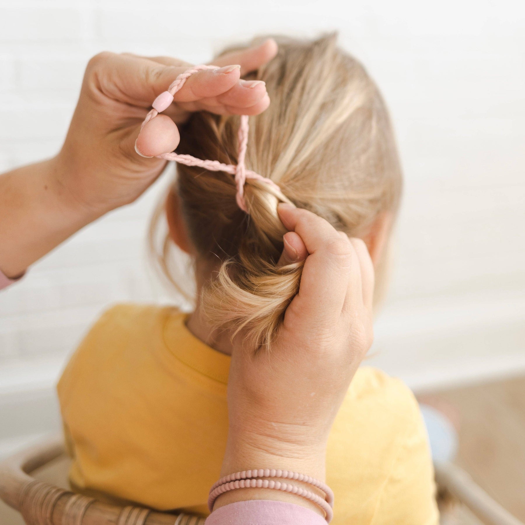 Cute meets dependable. Whether you’re tossing your hair into a quick pony or wearing one on your wrist, these elastic ponytail holders are as functional as they are stylish. Designed to stay put all day and perfect for every hair type—fine, thick, curly, or straight. Cutie Bands – Bold, braided, and made to hold tight. Cutie Bangles – Lightweight, dainty, and dependable. Made for the girl who always has a hair tie on her wrist—because these look cute there, too. Everyday essentials that work hard and look good doing it.